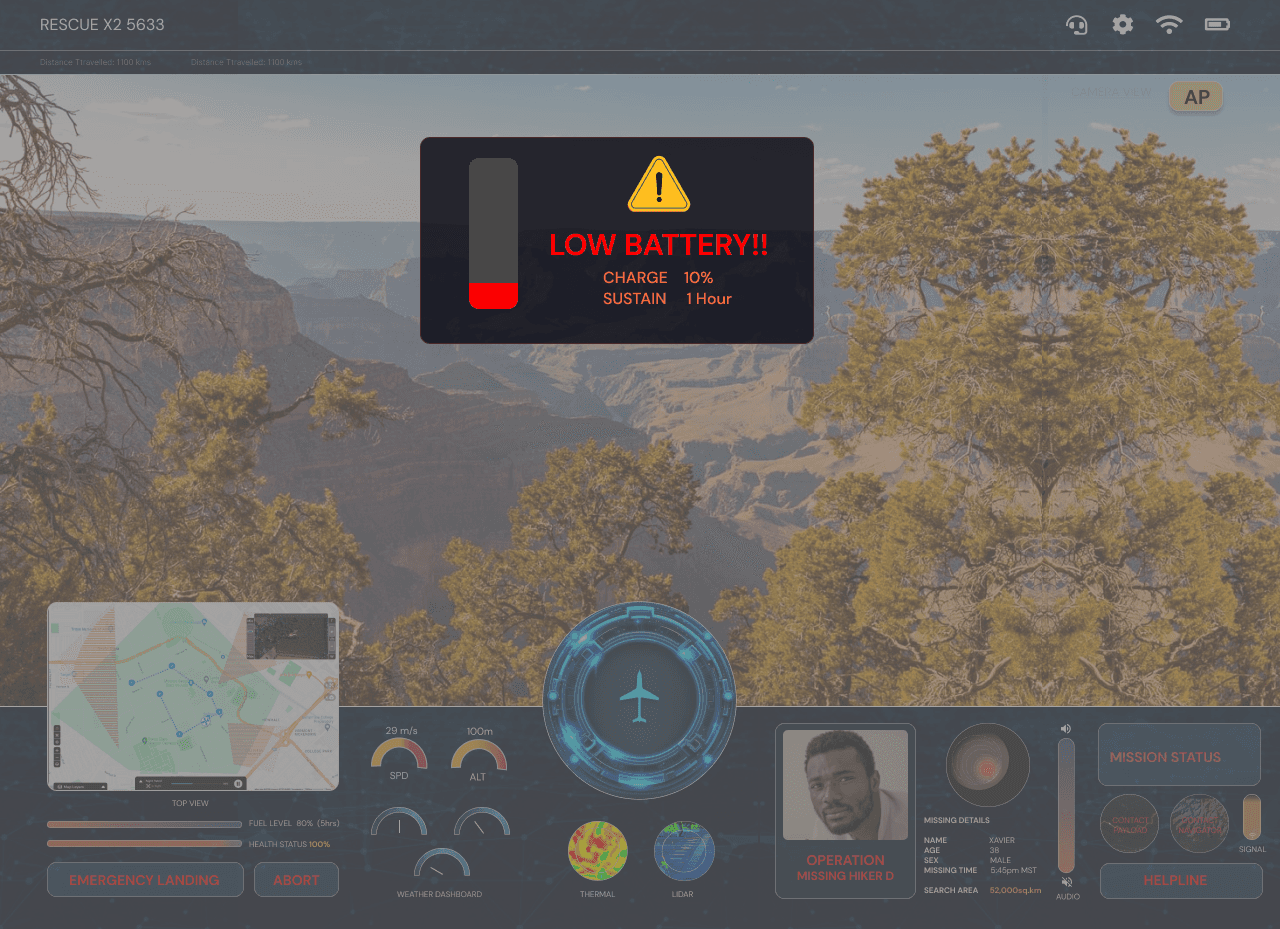 Once a hiker is located, the Payload Operator releases water or emergency supplies. Operators communicate with the hiker to provide guidance and reassurance while monitoring UAV safety.