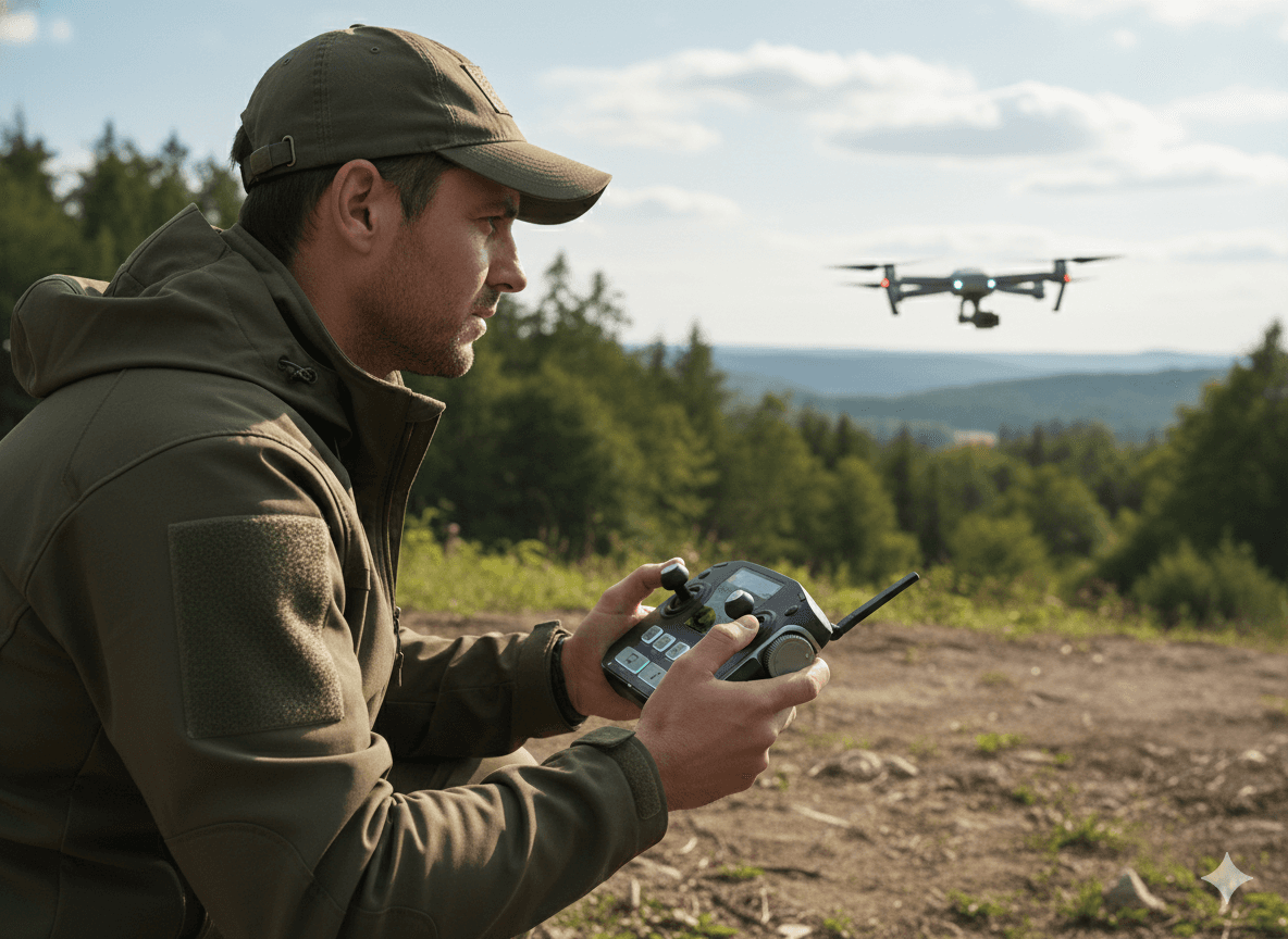 The UAV scans the environment using cameras and thermal sensors. Potential targets are highlighted, and operators verify hiker locations with real-time maps and mission alerts.