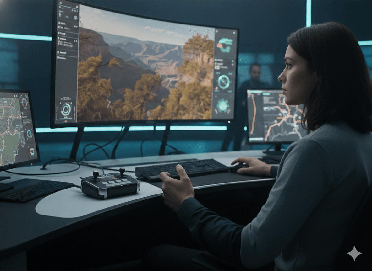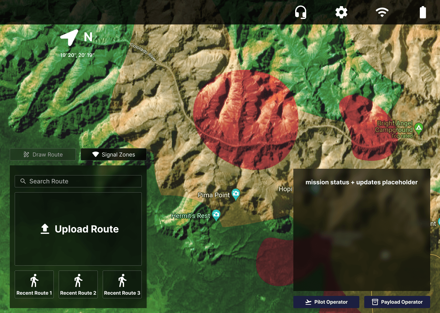The drone lifts off smoothly, following pre-planned routes. The Navigator monitors GPS coordinates and signal strength, ensuring the UAV stays on course across challenging terrain.